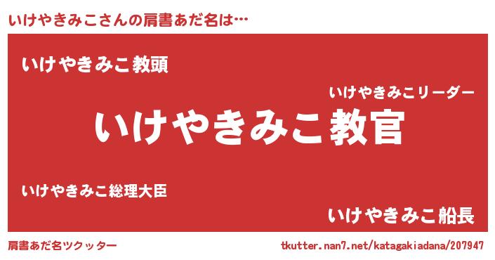 | ヘコむあだ名 | 『いけやきみこ(笑)』『いけを』 |