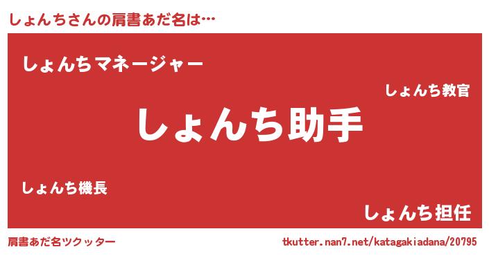 | 男性向けラノベタイトル風あだ名 | 『おまえをオタクにしてやるから、俺をしょんちにしてくれ! 』 |