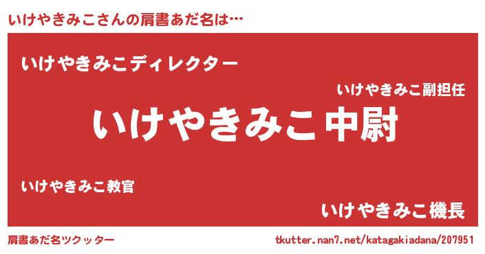 | ヘコむあだ名 | 『いけやきみこ(笑)』『いけっぺ』 |