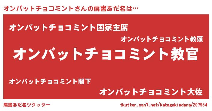 | 胡散臭い通販商品みたいなあだ名 | 『あなたにだけ特別に提供する100年もののヴィンテージワイン…その名も「オンバットチョコミント」』 |