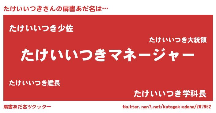| 男性向けラノベタイトル風あだ名 | 『たけいいつきに滅ぼされるだけの簡単なお仕事です』 |