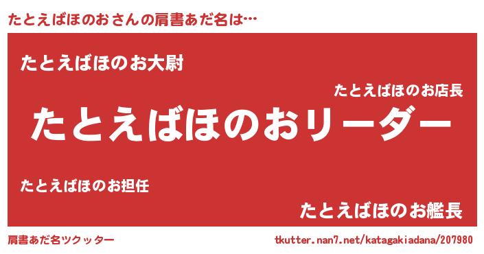 | 男性向けラノベタイトル風あだ名 | 『たとえばほのおの嫁は女の子じゃないと思った?』 |