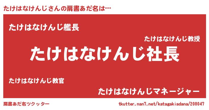 | ヘコむあだ名 | 『たけにー』『たけはなけんじ(爆)』 |