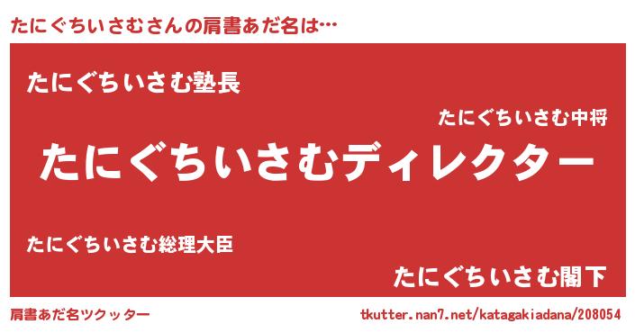 | ポケモン風あだ名 | 『タニゴンZ』『ヒタニグチイサム』 |