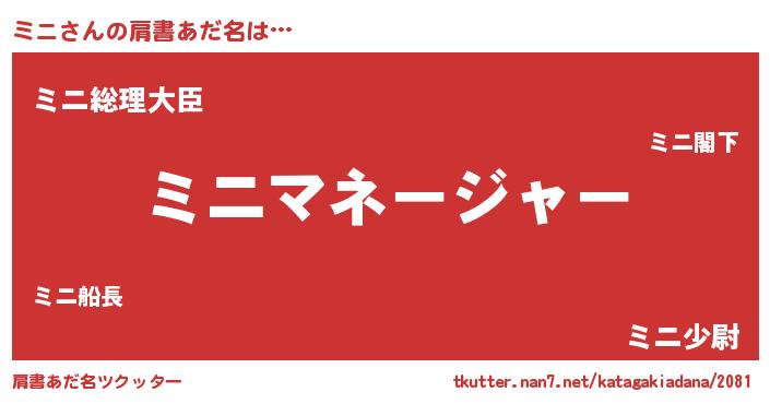 | 男性向けラノベタイトル風あだ名 | 『ミニに滅ぼされるだけの簡単なお仕事です』 |