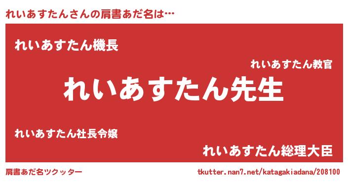 | ヘコむあだ名 | 『れいあすたん(小並感)』『レバニラ』 |