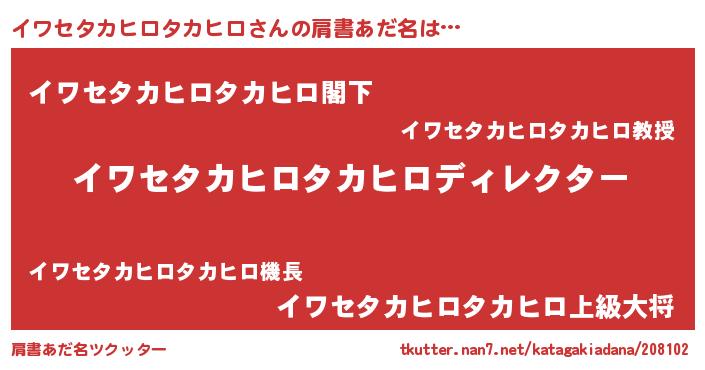 | 意味不明あだ名 | 『自称イワセタカヒロタカヒロ』 |