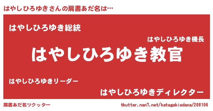 | 意味不明あだ名 | 『住所不定無職はやしひろゆき(53歳)』 |