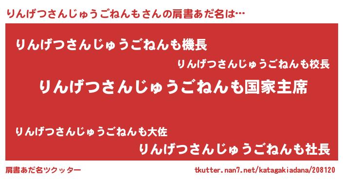 | 意味不明あだ名 | 『りんげつさんじゅうごねんもフォーエバー』 |