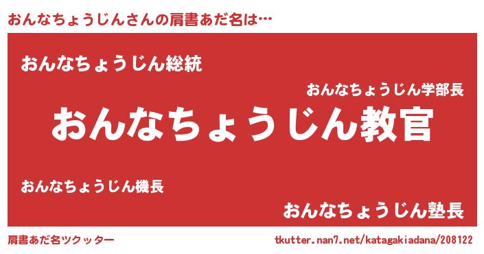 | 意味不明あだ名 | 『住所不定無職おんなちょうじん(5歳)』 |