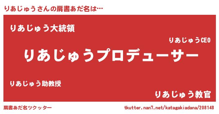 | 男性向けラノベタイトル風あだ名 | 『りあじゅうに滅ぼされるだけの簡単なお仕事です』 |