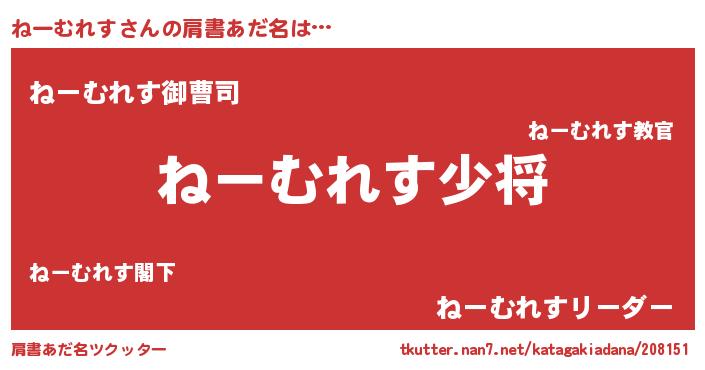 | 男性向けラノベタイトル風あだ名 | 『転生したらねーむれすだった件』 |