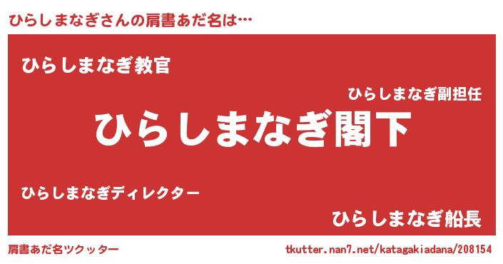 | 男性向けラノベタイトル風あだ名 | 『Re:ひらしまなぎから始める異世界生活』 |
