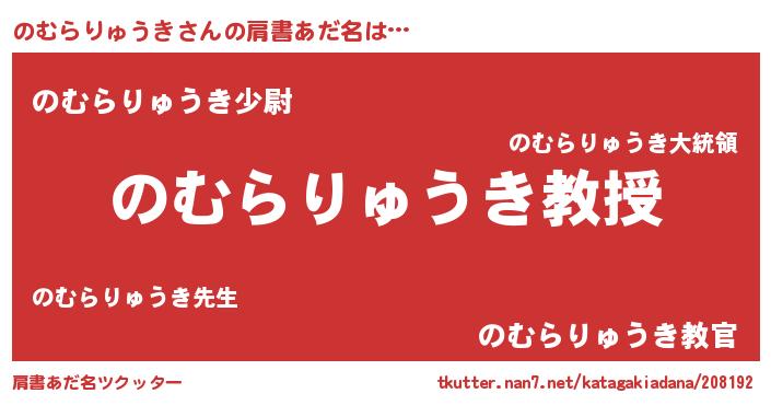 | 男性向けラノベタイトル風あだ名 | 『ノーゲーム・ノーノムラリュウキ』 |