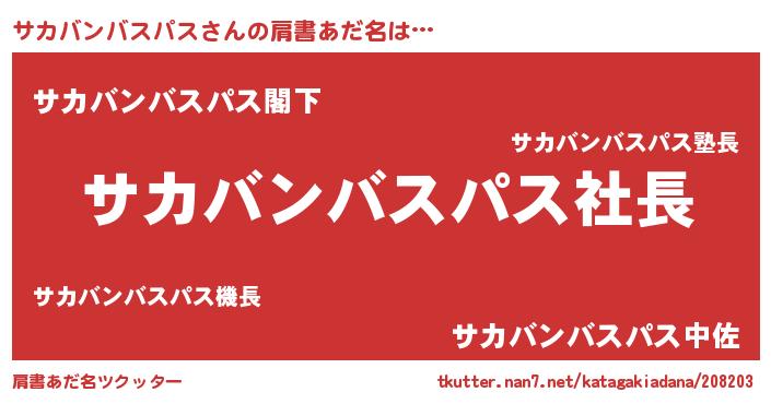 | 男性向けラノベタイトル風あだ名 | 『サカバンバスパスアートオンライン』 |