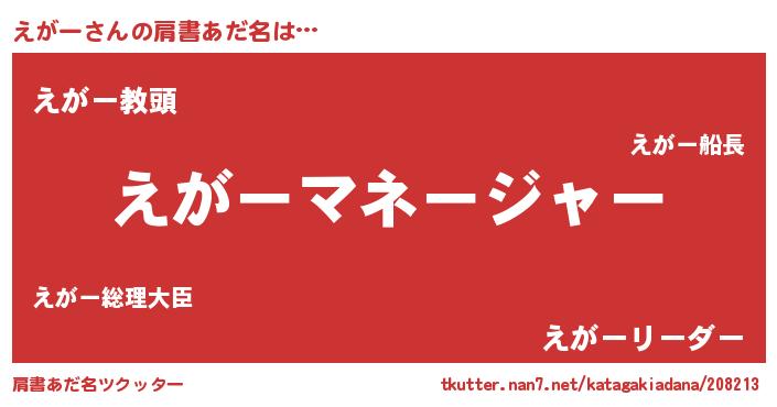 | ヘコむあだ名 | 『えがー(笑)』『えが太郎』『豆乳』 |