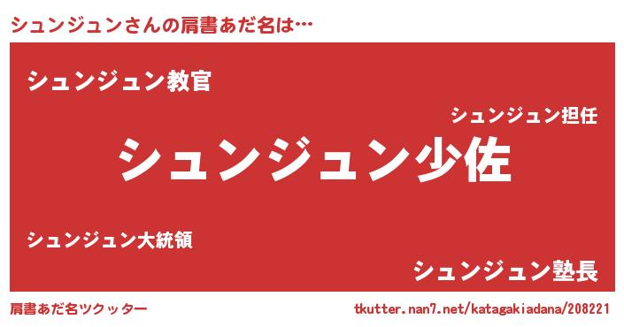 | 男性向けラノベタイトル風あだ名 | 『シュンジュンスレイヤー』 |
