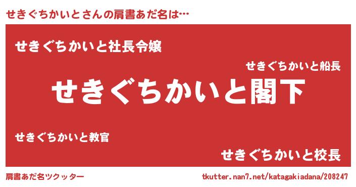 | 女子向けラノベタイトル風あだ名 | 『せきぐちかいとストレイドッグス』 |