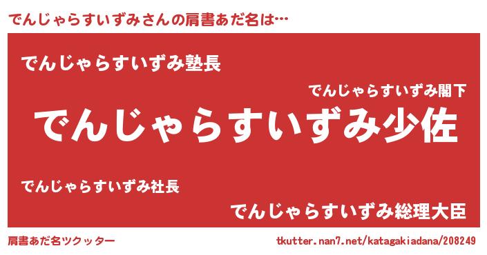 | 胡散臭い通販商品みたいなあだ名 | 『全米が絶賛したサプリメント…その名も「でんじゃらすいずみ」』 |
