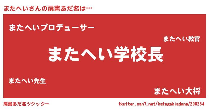 | ヘコむあだ名 | 『またへい(苦笑)』『牛乳』 |