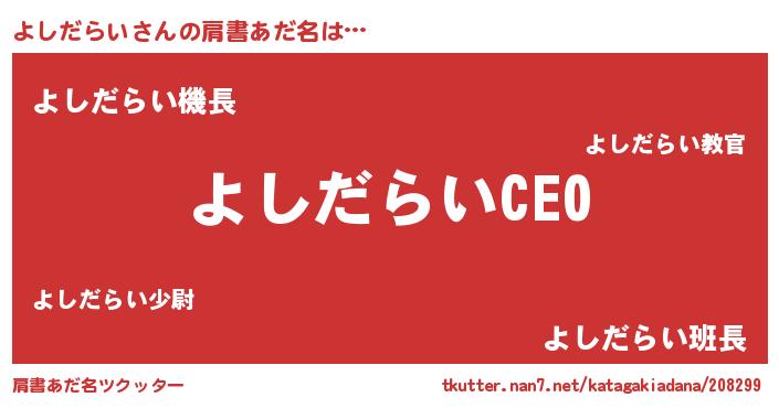 | 男性向けラノベタイトル風あだ名 | 『ヨシダライアートオンライン』 |