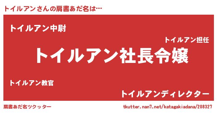 | 女子向けラノベタイトル風あだ名 | 『トイルアン姫と円卓の騎士』 |