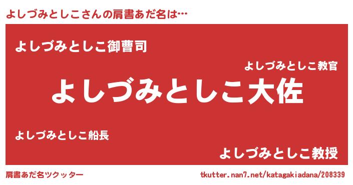 | 男性向けラノベタイトル風あだ名 | 『転生したらよしづみとしこだった件』 |