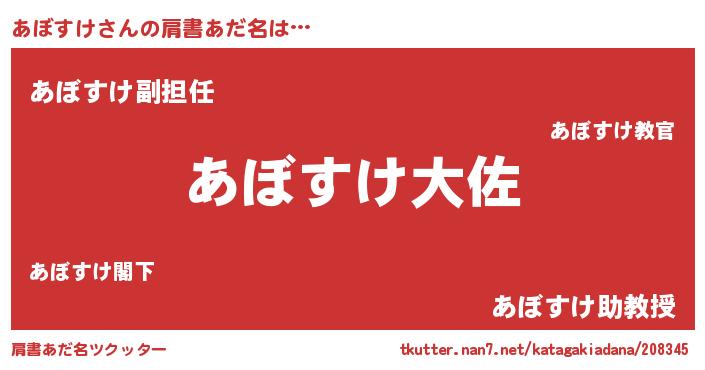 | ヘコむあだ名 | 『あぼすけ(笑)』『豆乳』『あぼを』 |