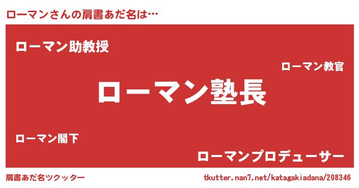 | 女子向けラノベタイトル風あだ名 | 『ローマンの卵を拾いまして』 |