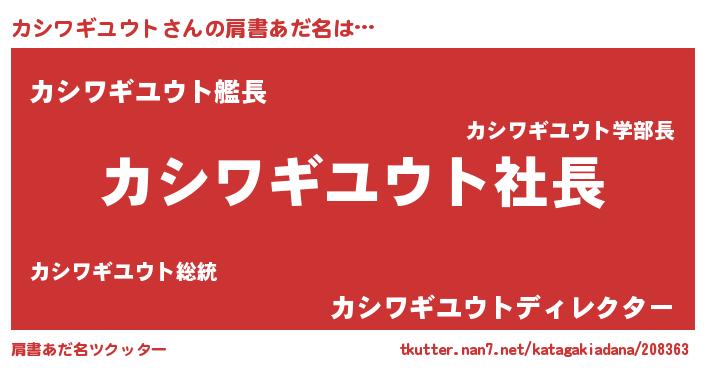| 恥ずかしいあだ名 | 『プリティーカシワギユウト』『カシちん』 |