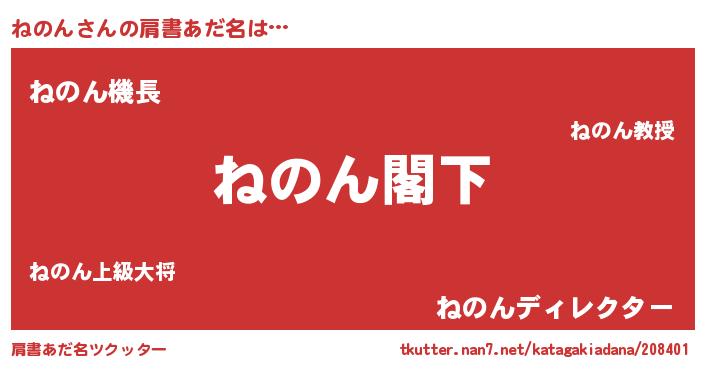 | ヒーロー風カッコイイあだ名 | 『最強戦士ネノン』『愛の使者ねのん』 |