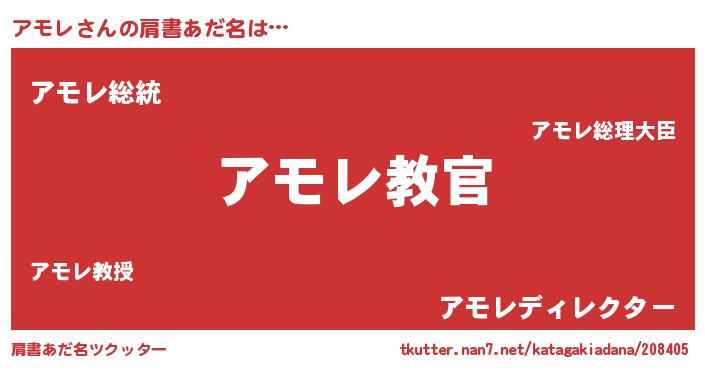 | 意味不明あだ名 | 『住所不定無職アモレ(53歳)』『自称アモレ』 |