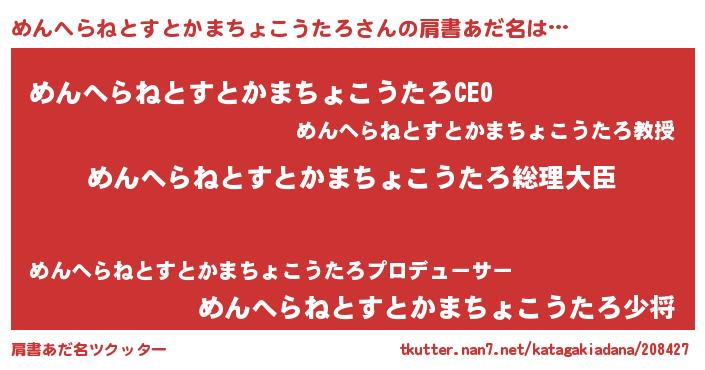 | 欧米人風あだ名 | 『めんへらねとすとかまちょこうたろクリステル』 |