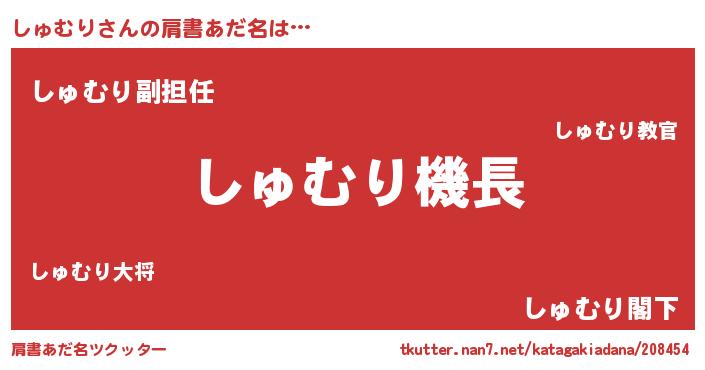 | 男性向けラノベタイトル風あだ名 | 『緋弾のシュムリ』『魔弾の王としゅむり』 |