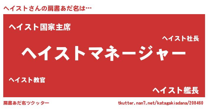 | 男性向けラノベタイトル風あだ名 | 『ヘイストに滅ぼされるだけの簡単なお仕事です』 |