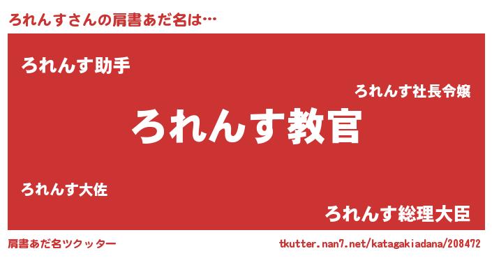 | 意味不明あだ名 | 『住所不定無職ろれんす(8歳)』 |