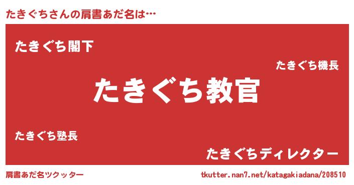 | 男性向けラノベタイトル風あだ名 | 『この素晴らしい世界にたきぐちを!』 |