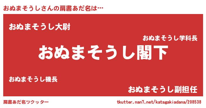 | 意味不明あだ名 | 『自称おぬまそうし』 |