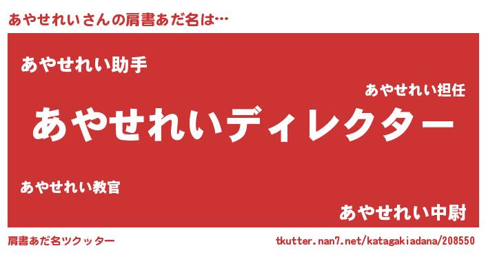 | ヘコむあだ名 | 『あやせれい(笑)』『あやっ子』 |