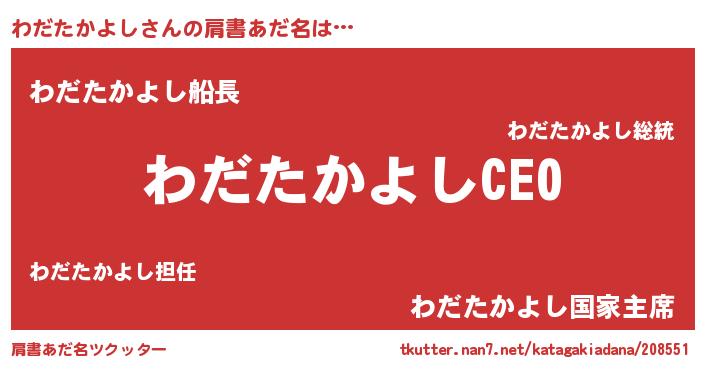 | ヒーロー風カッコイイあだ名 | 『スーパーワダタカヨシ』『銀牙騎士ワダ』 |