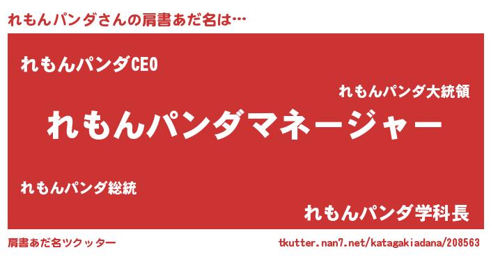 | 男性向けラノベタイトル風あだ名 | 『れもんパンダに滅ぼされるだけの簡単なお仕事です』 |