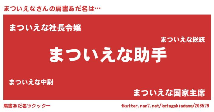 | 男性向けラノベタイトル風あだ名 | 『おまえをオタクにしてやるから、俺をまついえなにしてくれ! 』 |