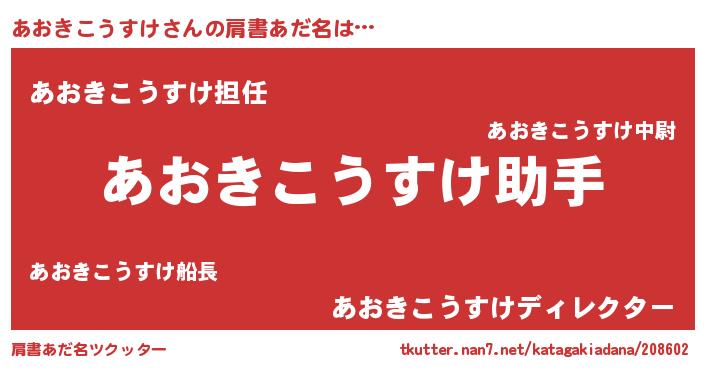 | 男性向けラノベタイトル風あだ名 | 『ノーゲーム・ノーアオキコウスケ』 |