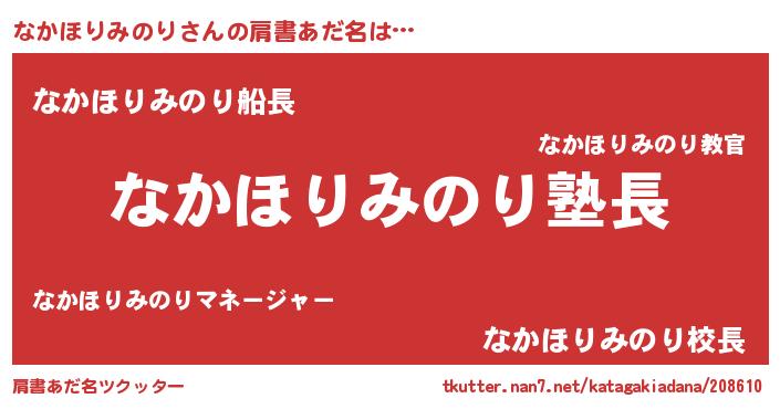 | ヘコむあだ名 | 『なかっぺ』『なかほりみのり(小並感)』 |