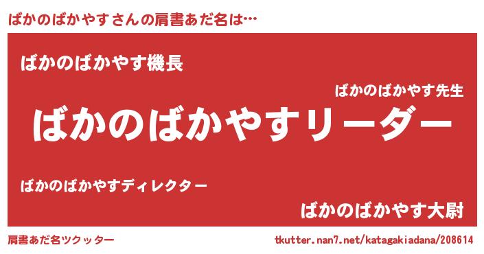 | 欧米人風あだ名 | 『ウサインばかのばかやす』 |