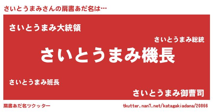 | 男性向けラノベタイトル風あだ名 | 『うちのさいとうまみが世界を掌握している!』 |