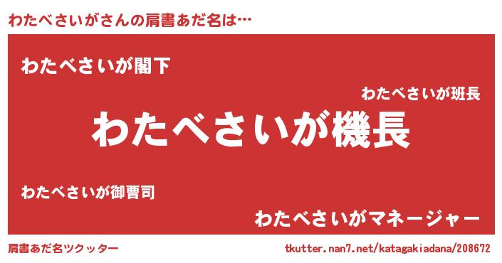| 欧米人風あだ名 | 『わたべさいが・ステッグマイヤー』 |