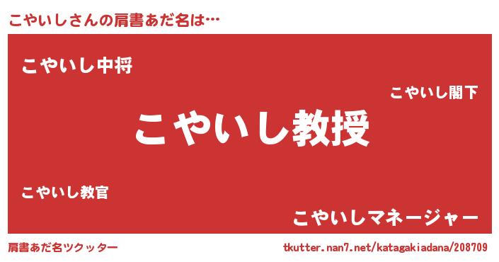 | ヘコむあだ名 | 『こやにー』『なまこ酢』『こやお』 |