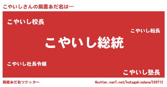 | 意味不明あだ名 | 『自称こやいし』『永久保存こやいし』 |