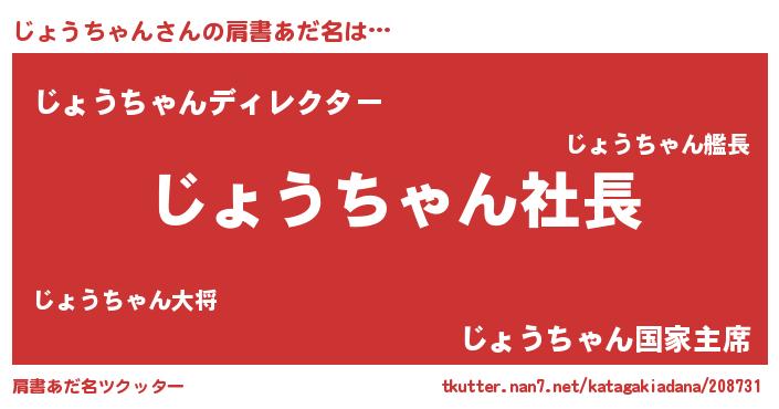 | 男性向けラノベタイトル風あだ名 | 『じょうちゃんの憂鬱』 |